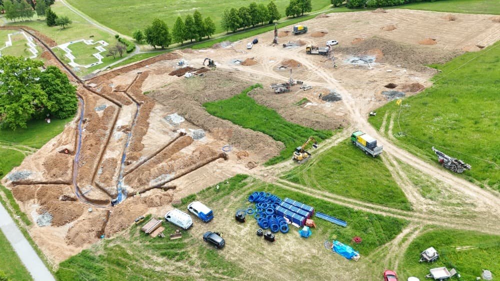 Naše společnost GEROTOP se stala dodavatelem kompletního řešení geotermálních vrtů, včetně jejich vystrojení a propojení do tří samostatných vrtných polí. Celkem bude instalováno 58 vrtů o hloubce 200 metrů, které doplní 2 již dříve zrealizované průzkumné vrty, nyní začleněné do systému 60 vrtů.